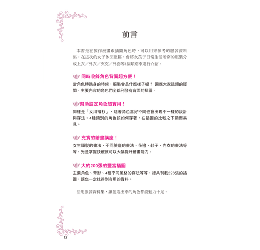 ‧貼心收錄背面造型:除了正面之外,每種款式均收錄背面造型,方便讀者進行不同視角的描繪