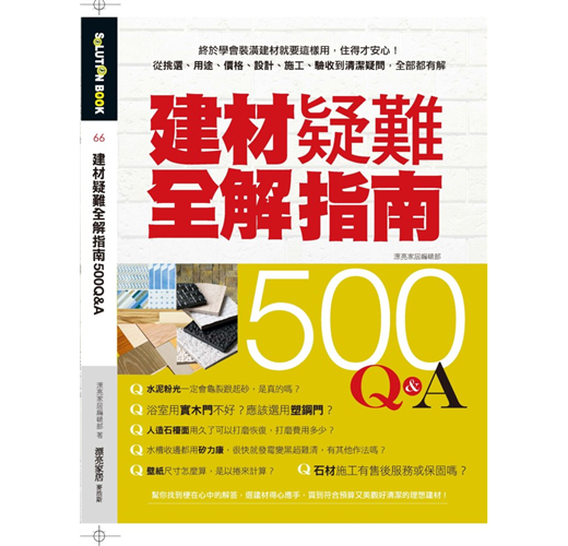 建材是居家裝潢最基本的元素,想打造一個住起來舒適的居家,首先就要先從材建下手。但是裝潢前建材該怎麼挑?裝潢中建材不同,施工又要怎麼做才對?使用之後發生問題,有沒有方法補救?本書收集500個不論是裝潢前、裝潢中還是裝潢後,對於建材的各種疑難雜症問題,並請到建材達人、設計師聯手解答,從挑選、用途到價格、設計、施工、清潔等面向深入解析,讓你找到梗在心中的解答,選建材得心應手,買到符合預算又美觀好清潔的理想建材!