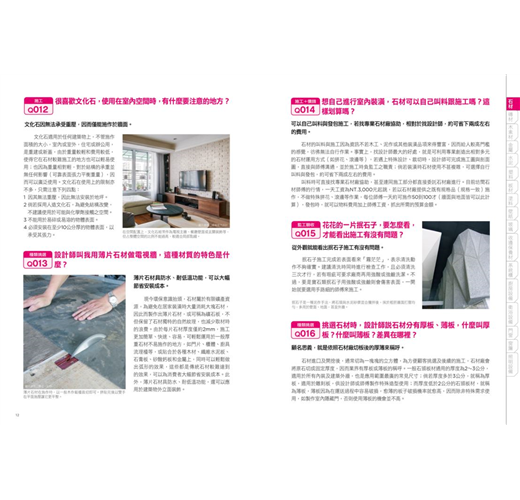 不只針對問題做解答,更特別嚴選出常見、常用、常聽的價錢、施工、尺寸單位等裝潢專業術語和名詞,以及建材使用的關鍵小撇步,搜羅關於建材最完整、全面的知識,讓你面對讓工班、廠商和設計師,再也不用害怕被唬嚨。