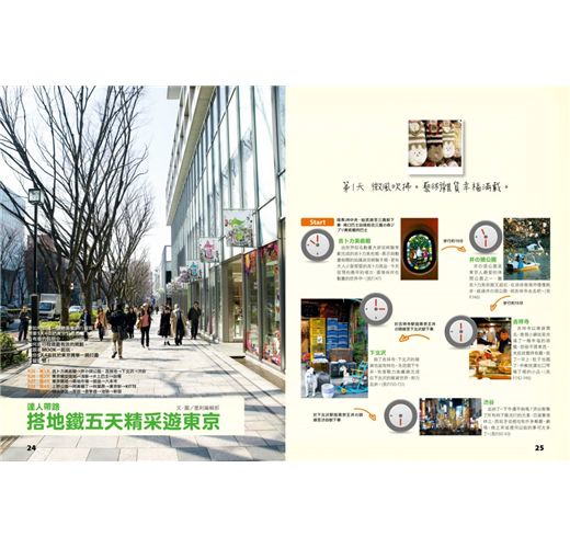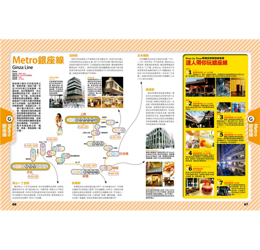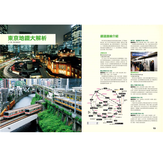 本書為2014年最新版。隨著日幣貶值,前往日本旅遊的人越來越多,尤其是集吃喝玩樂之大成的東京,不僅流行感度高、世界美食匯聚,且各類文化薈萃、新名所源源不絕,這座持續不斷進化的城市,更是遊日本時的首選。東京的交通系統四通八達規劃完善,只要利用鐵路就可以順利抵達想去的景點,與此同時,縱橫交錯的鐵路線、不同鐵路系統間的轉乘銜接與五花八門的票券,也往往容易讓人迷失其中而感到不知所措。有鑑於此,本書依東京地鐵路線規劃出11條鐵道路線詳加介紹,從營運方式、車票、票價、到路線等注意事項解構介紹,讓讀者能一到現場就馬上進入狀況。比起舊版,本書新增了更多好吃好玩的店家、景點,且經過重新規劃及編排,挑出每個地鐵站周邊吃喝玩樂必訪去處,以拉線的方式搭配地圖,強調點對點的交通方式做旅遊規畫,讓讀者迅速掌握必玩去處。此外,我們還替讀者規畫了五天的地鐵順遊行程,Stop by Stop即可暢遊各大景點,流暢的路線安排以及最精選的景點建議,節省行程規劃的心力及時間,讓你一書在手便能在輕鬆悠閒地遨遊。