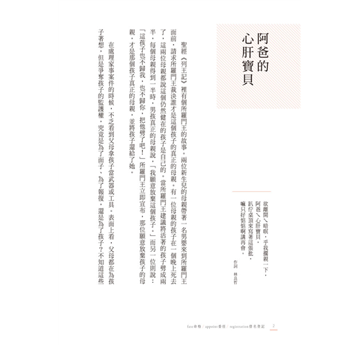 「律師」這個行業,在我的想法中,經常要扮演噬罪人(Die Seele des Bösen)的角色,不是「飾」罪,也不是「拭」罪,而是「噬」罪。從事這個行業的人,必須將當事人的痛苦與罪惡,具體轉化或適用於世俗的法律之中,協助法院使每個人可以適得其分。所謂的「適得其分」,就是讓人世間的秩序恢復應有的道理,而不是勝訴或敗訴。法院裡的正義,許多時候反而不是公平,畢竟法官不是全知全能,是以律師就必須要...