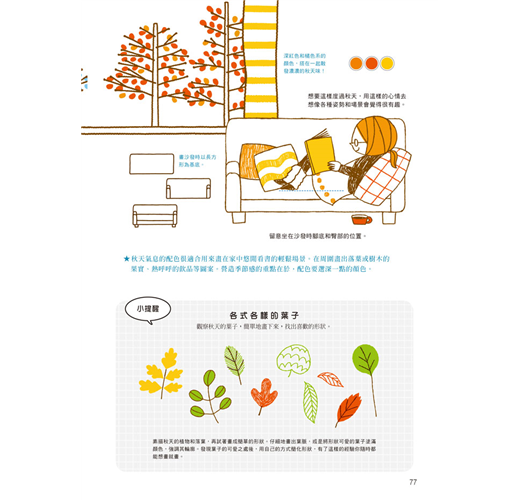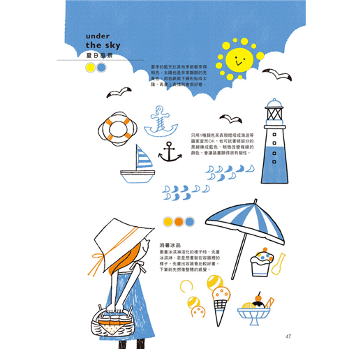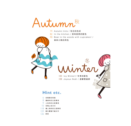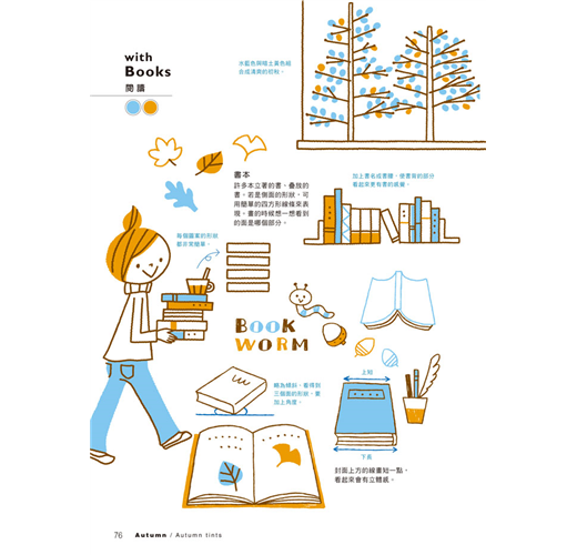 插畫方面,比起畫法的說明,重點是放在不同季節適合畫怎樣的插畫和創意的發揮。