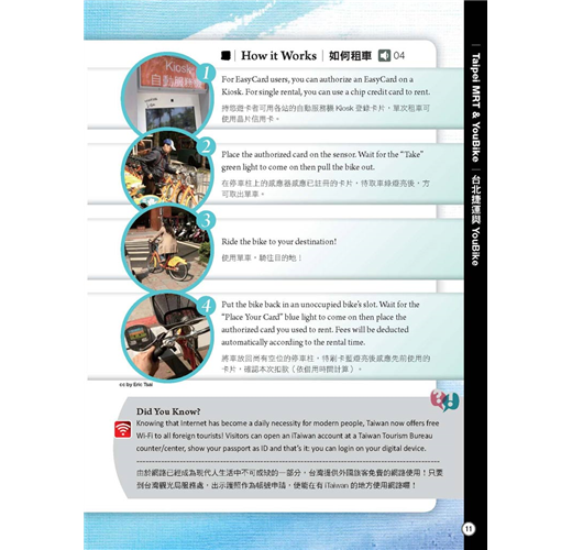 走訪臺灣民主紀念館、行天宮、龍山寺、忠烈祠、三峽老街,中英對照搭配圖片,充分了解當地的歷史傳承,便能鑑古知今,充實自身人文素養。