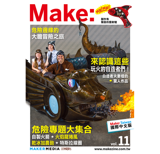 在本期《Make》裡,將告訴你如何創造像龍捲風一般的火焰、乾冰加農砲、自製火箭,甚至不需要購買昂貴的零件,就能做出可以發射15”電弧的經典特斯拉線圈!