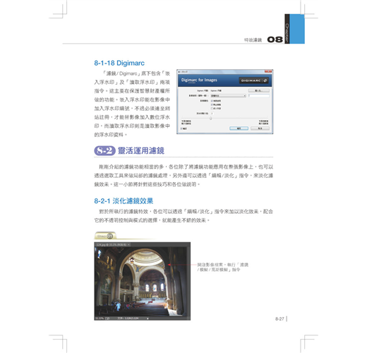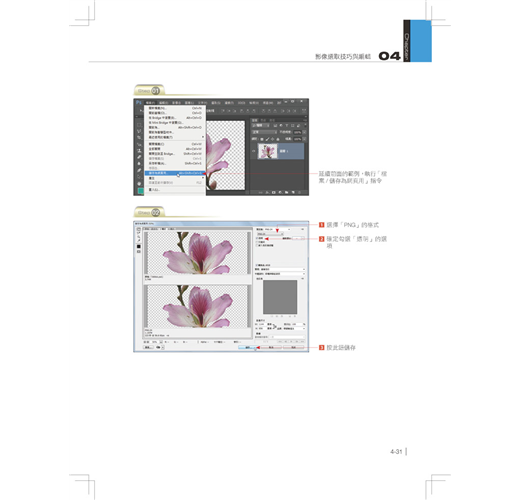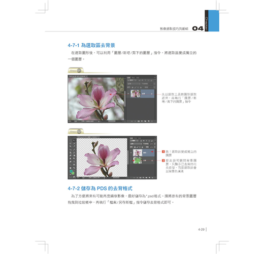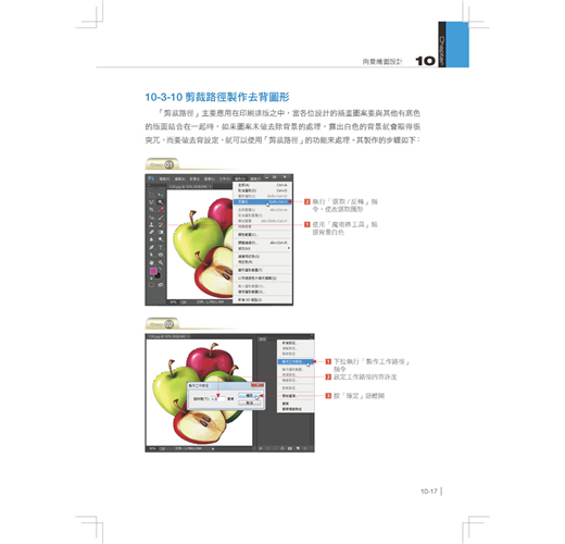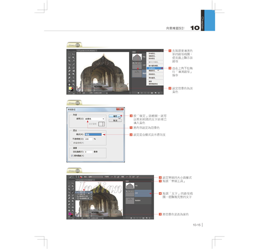 重要技巧諸如圖像如何選取與編輯、文字應用設定與變化、圖層建立與效果添加、濾鏡特效轉換、向量圖形設計繪製、色版新增與使用等功能。