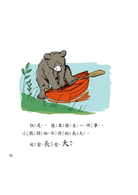 可是小熊一天天長大,小船卻沒跟著長大,當它變成大熊以後,就坐不進小船裡了。為了讓他的小船能夠繼續在湖裡航行,他把小船送給另一隻小熊,從此他就可以一邊做自己的事,一邊看著小熊像他小時候那樣,划著小船在湖裡晒太陽、抓魚或做夢了。