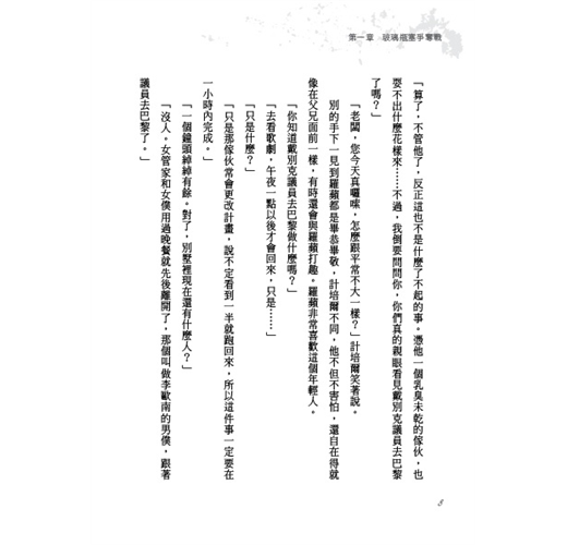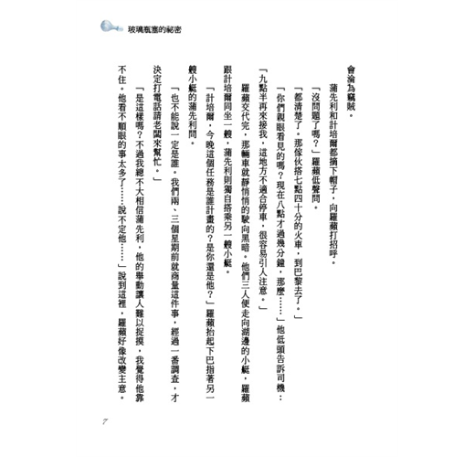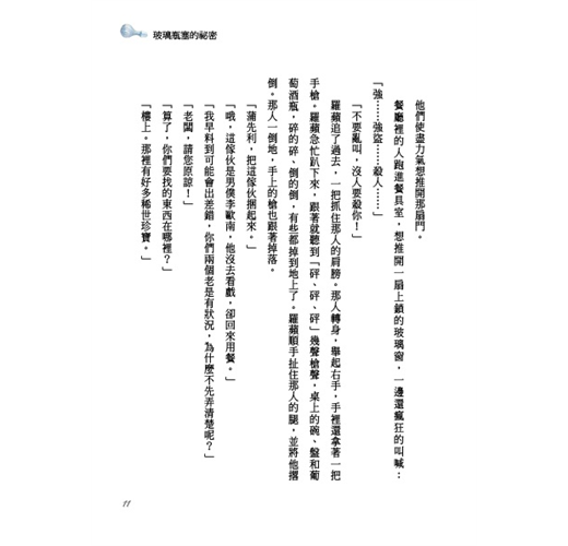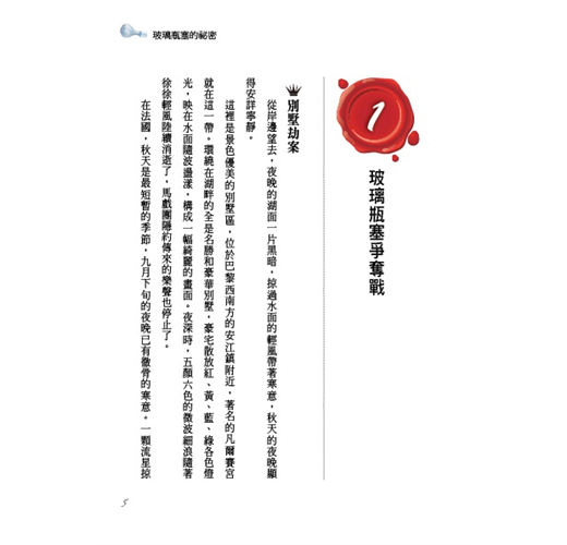 一名議員以非法手段取得一份祕密文件,並靠著這份文件到處敲詐、勒索,許多政府要人、社會名流因此傾家蕩產、身敗名裂。羅蘋只知道文件被藏在一只玻璃瓶塞裡,卻不知哪一只玻璃瓶塞才是關鍵瓶塞,他用盡心機去取得,卻又一再遺失,到底是誰從中作梗?他那個被判死刑的年輕手下與這樁案子有什麼關係?優雅的女士又為什麼要假扮男裝,潛入險境呢?羅蘋有辦法整垮這名作惡多端的議員嗎?