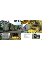 猶如掛在田裡的稻子的斜材之間,覆上預力混凝土打造的屋簷與玻璃。這棟建築物幾乎沒有外牆,而且內部是自然採光。