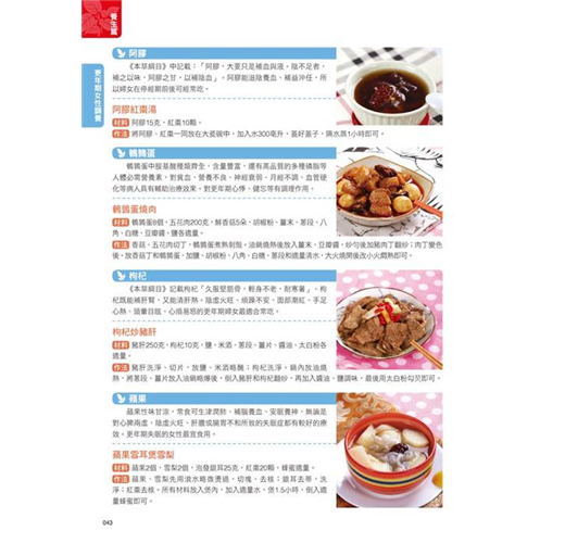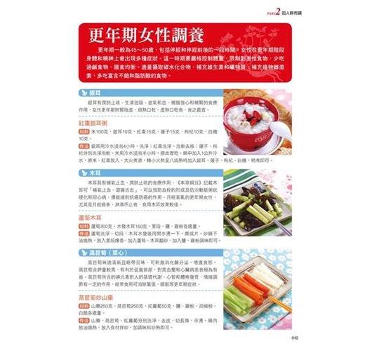 從嬰幼兒、男性、女性,到銀髮族,依不同年齡嚴選必備的飲食良方,如益智、長高、排毒、安胎、坐月子、抗衰老、強健骨頭等需求,邀你一同為健康把關,吃出滿滿元氣。