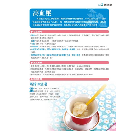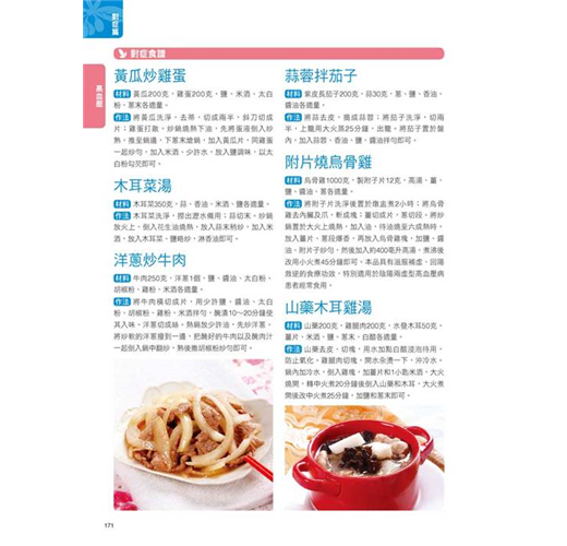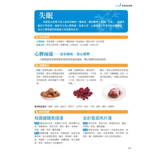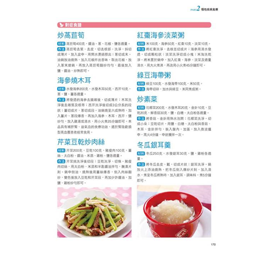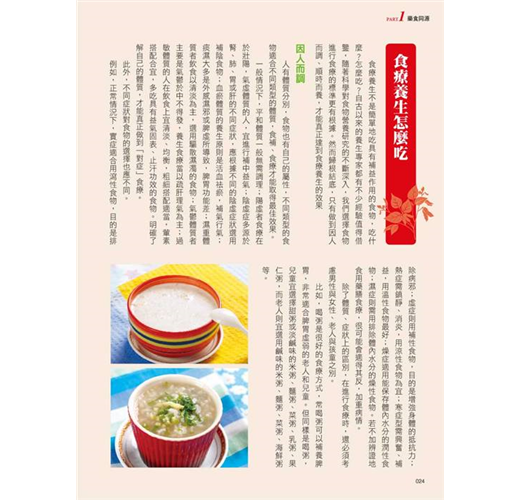 針對65種常見症狀及慢性病,提供特效食譜,實用性佳。從改善女性不適,如經痛、失眠、水腫;緩解日常小毛病,如感冒、咳嗽、胃痛;控制糖尿病、高血壓、肥胖,以及減輕小兒便祕、腹瀉等,一一給予食療改善的重點及補充建議。