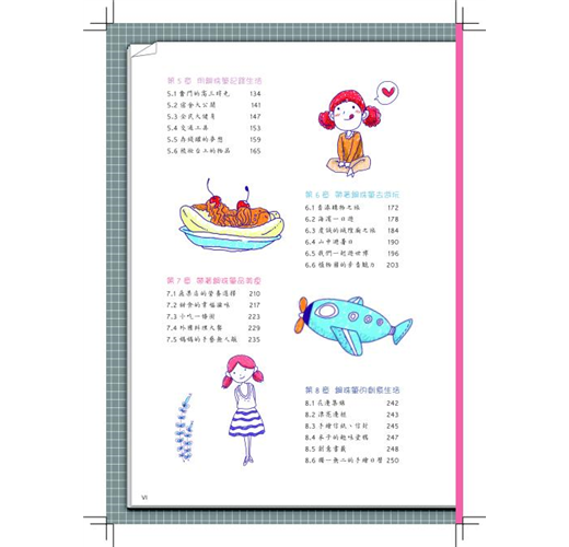 從畫線條開始練習,○△□基本形掌握住,慢慢就能變化出各種生活小物,從食物到人物、從花卉到鳥類,只要是你想到看到的,通通都能畫下來!