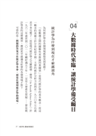 內容橫跨六大領域的知識入門書,以最簡單的生活常識讓讀者領略以下學問:社會調查法、生物統計學、心理統計學、資料採礦、文字探勘、計量經濟學。
