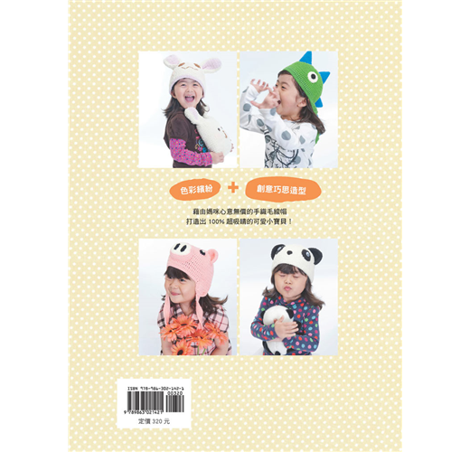 色彩繽紛+創意巧思造型,藉由媽咪心意無價的手織毛線帽,打造出100%超吸睛的可愛小寶貝!本書收錄許多造型卡哇依的動物毛線帽、適合歡慶活動的特色毛線帽,以及成套的搭配小物,鮮明亮麗的用色最適合用來妝點俏皮可愛的小朋友了。簡單易作的教學解說和製作技巧,即使是編織新手也可以輕鬆學會喔!