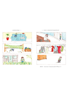 最後一個跨頁,小男孩拿著媽媽的衣服,一邊澆著花,
