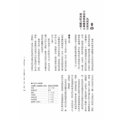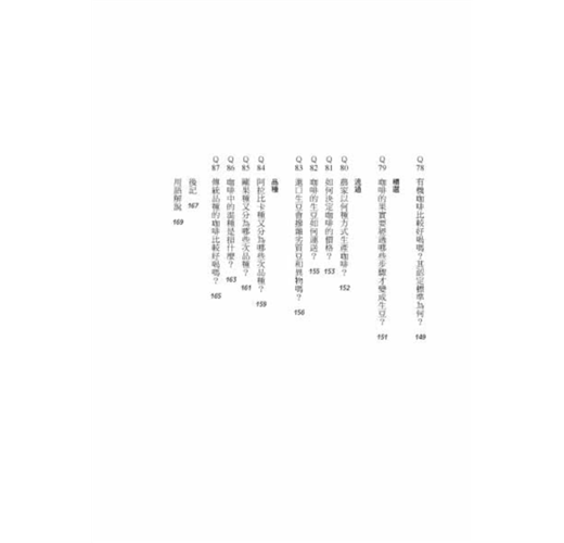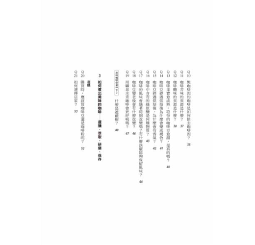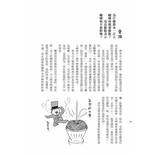 簡明的字句搭配趣味橫生的插圖,解說基礎知識與專業用語,並透過Q&A的方式解答咖啡美味背後的各種原因。