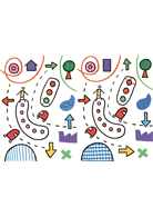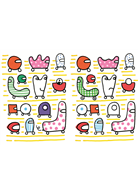 《哪裡不一樣?》以兩頁對照的方式,讓孩子找出不同之處,訓練孩子的觀察的好眼力。並且學習從各式各樣、繁複的圖形、線條裡,在抽絲剝繭、尋找、驗證過程中,培養出耐心、細心的好習慣。