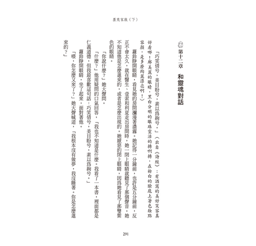 這個被釘在那裡的男人究竟是誰?波利長老要蘿鈴到飛鳥樓的真實目的又是什麼呢?隨著黑信函揭露墨夷家族的祕密,蘿鈴能了解母親家族與墨夷家族間千絲萬縷的關係,而因此了解自己的身世嗎?