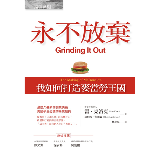 只要稍微聽過克洛克的演講,就不難了解他將這本自傳取名為「Grinding It Out」 的原因,並不是暗指麥當勞漢堡的製程,而是呼應他自己三十年來苦幹實幹的工作經驗──先是在紙杯公司當銷售員、升上銷售經理,後來再出來自己創業。直到一九五四年,終於出現畢生難逢的契機;那年他已經五十二歲,通常屆此年齡的主管已開始嚮往閒雲野鶴的退休生活。本書也適時提醒讀者,麥當勞之所以能成為今日速食加盟產業的龍頭,背後其實投注了大量時間、心力與資本。