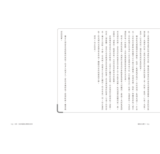 身為靈氣師父,可敬的蕾文女士在本書分享了自己如何運用靈氣這股愛的力量,觸及並撫慰了人類在生老病死,以及天災人禍中脆弱的身心靈,篇篇真情感人,完全實證了靈氣足以轉化世界的黑暗成為光明的力量。這些珍貴的紀錄無疑是想深入靈氣奧祕的光行者,不容錯過的現場教戰手冊。對於想一窺靈氣多元面向的新朋友,本書每章節後提供實用的冥想與練習,有助於你校準在靈氣光海的能量裡,提升個人愛的生命動能。