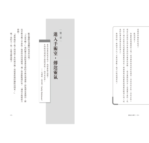 這是一本不一樣的靈氣書籍,作者不是要談靈氣的歷史和理論,而是實實在在的分享她二十年來接觸靈氣的真實故事。她沒有任何醫療的背景,卻與紐約權威的心臟科醫師合作,把靈氣帶入手術室;並且有效協助癌症患者在化療的過程中得到實際上的支持;成功為NBA職業球員治療身體多年來的舊患;還有在九一一災難現場擔任八個多月志工服務的寶貴經驗……