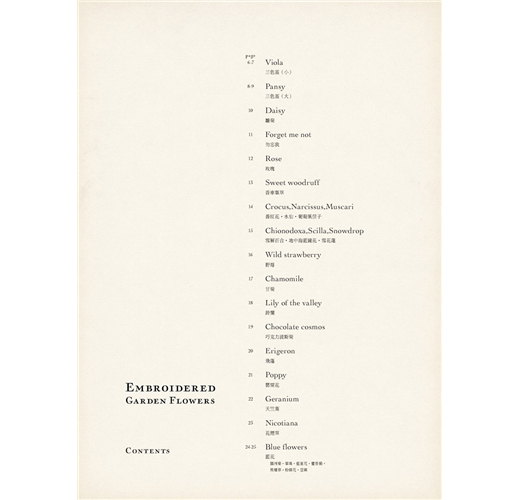 全書收錄青木和子老師種過&她最鍾愛的63款花草圖案,平時對於園藝相當研究,並將其創意融入手作,使每一幅作品都充滿生命力的青木老師,搭配詳細的基礎繡法介紹,以及極為講究的配色建議,讓每一種花草的表情,都能展現獨到的美感,她也特別在書中就各式花草的特性作了重點提醒,讓想要動手繡繡看的初學者,也能在家看書完成最愛的花草系刺繡,這絕對是愛花手作人必備的最佳學習入門書!