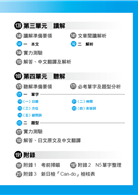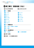 第二單元:「言語知識(文法)」依照出題基準,系統整理基礎文法,幫助考生熟記基礎文法概念,加速考生作答效率。