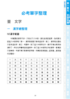 按照考試內容,本書分為四大單元,每一單元一開始分別是「單字整理」、「文法分析」、「閱讀解析」、「題型整理」,接著每一單元都有實力測驗與解答解析,除了一網打盡所有必考重點之外,還能藉由測驗與解析找出應考盲點,厚植實力。