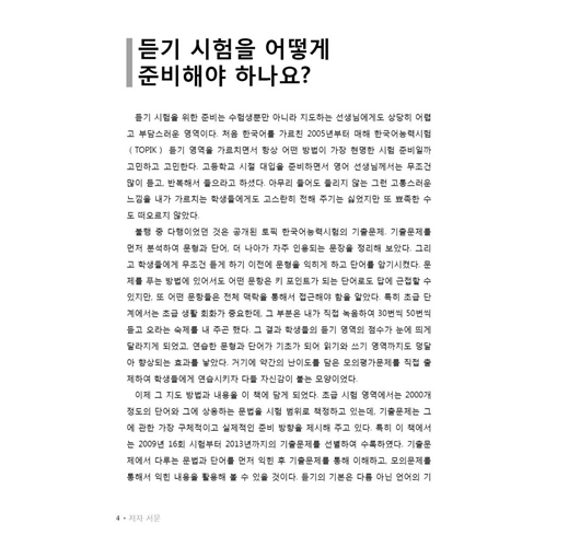 面對聽力測驗的準備,不只是考生,對指導老師來說也是個相當有難度並感到負擔的領域。從2005年韓語教學開始,每年在教導學生準備韓國語能力測驗(TOPIK)聽力時,也經常在思考什麼才是最好的考前準備方法。回想起在準備大學聯考階段,當時英文老師說,準備聽力沒有其他捷徑,就是多聽、反覆的聽。雖然我也不想把當時怎麼聽都聽不懂的痛苦帶給學生,但也想不出更好的方法。