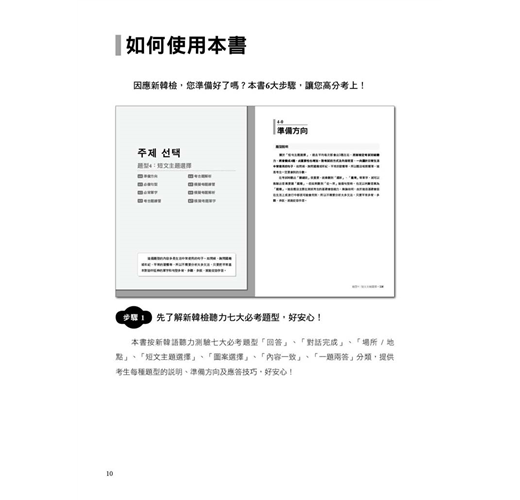 本書將每一題型必考句型和單字分門別類,提供考生明確的準備內容,只要按部就班學習和複習,就能打好韓語聽力基礎,好完整!