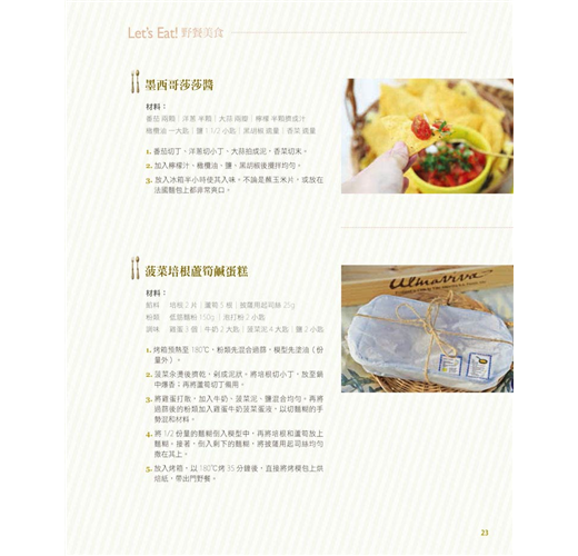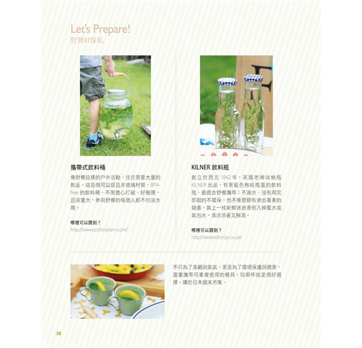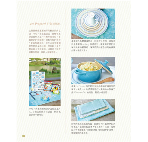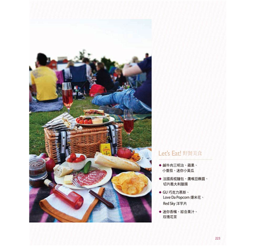 蒐羅台灣30個野餐景點,以及延伸的周邊美食、必備雜貨、器皿等。並由多位野餐達人傳授主題野餐佈置法,以及各種令人食指大動的餐點食譜。
