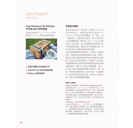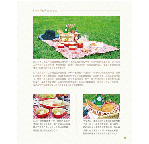 詳列各景點的交通方式及園內設施,任何人都能輕鬆前往。完整收錄美食及雜貨的採買情報,打造最具樂趣的野餐活動。
