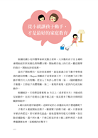 誰說「孩子不用教,長大自然就會了」?Choyce認為孩子不但要教,還要從小教、從家庭教育著手。然而,她運用的絕不是虎媽的教養方式,而是寧可在孩子出生的第一天開始,就不嫌麻煩、不貪快、循循善誘,先建立一套原則,讓孩子協助做家事,進而培養孩子的學習力、社群力、自主力和想像力等四大基礎能力。Choyce推廣省錢、不浪費的好用教材,善用生活周遭家務來教學,分享與孩子和諧相處的祕訣。期許更多親子家庭可以獲得新觀念,全家人一起快樂學習成長。