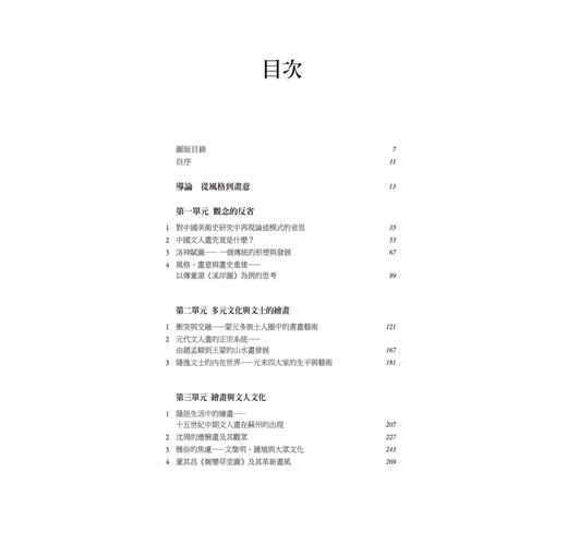 自二十世紀中期以來,關於中國繪畫研究的方法與模式已有長足發展,其中以風格學的形式分析貢獻最力,在時代風格的確立與特定風格系譜的建立方面,成果卓著,但另一方面也出現了侷限。作者對此作了回顧與反思,質疑以西方狹義的「再現」(representation)標準來研究中國繪畫的適當性,進而提出「畫意」作為一種觀看中國繪畫的方式。「畫意」一詞原出自中國傳統畫史,但作者試圖從藝術品與觀者互動的角度予以考量,力求將作品還原至創作初始的文化情境來理解其「畫意」。全書以「畫意」一旨貫串,於風格分析的基礎之上,一方面開展新議題,一方面對傳統的議題提供新視角,如以族群衝突、交融的觀點解析豐富多元的蒙元繪畫、或以區域競爭的角度觀察地方畫派等,其中對於「文人畫」發展的重新審視與解讀,更是前所未發之真知灼見。