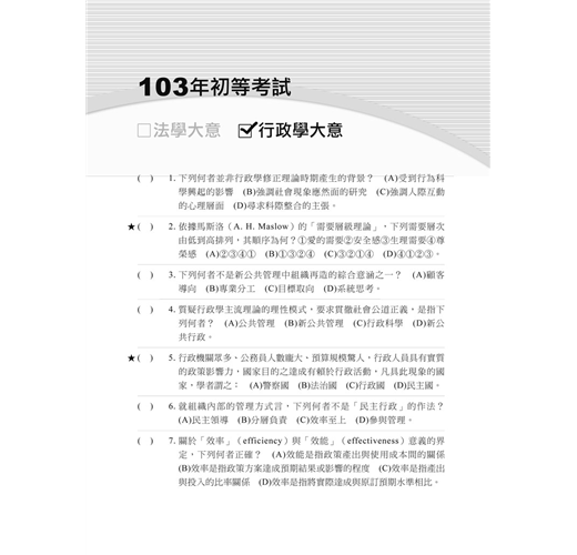 為求讀者不畏複選題,本書率先各提供法學大意、行政學大意60題的模擬評量,總共高達120題的複選題演練,讓您充分熟悉複選題型,測試自我程度,立即找出平常閱讀未注意到的重點,再次溫習課程內容。只要熟讀本書,就算高齡120歲也不會對複選題有絲毫恐懼。