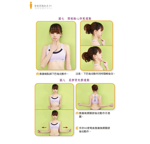 後伸等長收縮操、頸椎「開香檳」運動練習法等。