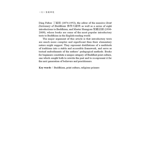 聖嚴法師是深具宏觀視野與開創性的當代思想家和宗教家,著重以現代語言和觀點普傳佛法,提倡建立全球性倫理,為當代佛教創新思路、革新發展。聖嚴教育基金會於二○一二年舉辦第四屆聖嚴思想研討會,主題定為「聖嚴法師與當代漢傳佛教的回顧與前瞻」,共發表六十二篇論文,是歷來論文發表最豐富的一次。