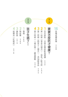 在第一章〈迎接寶寶的誕生〉當中,黃瑽寧醫師針對臺灣的家長,整理出迎接小生命之前與之後所需要注意的事項。另外,作者也將臺灣最新的疫苗政策,以及目前流行的新生兒自費超音波檢查,用淺顯易懂的方式讓家長了解其來龍去脈;這點是我在其他育兒書本中看不到的。