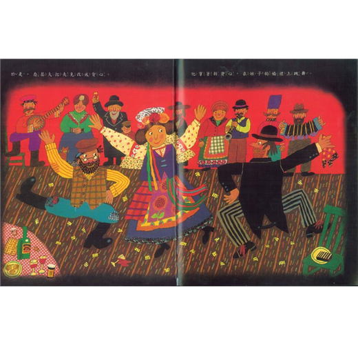 充滿韻律節奏的文字,念起來十分有趣,書本最後還附上一首曲調簡單易記的意第緒民謠,