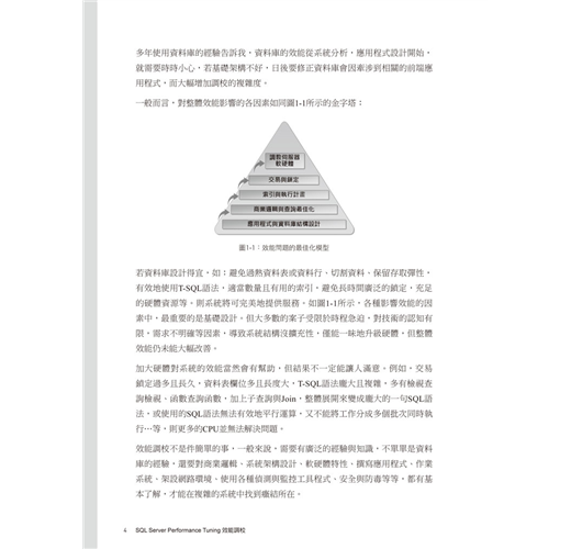 資料庫管理師(DBA)或系統開發人員在發生效能問題的初期,大都沒有方向,不知如何解決問題。市面上有一堆書籍教人如何利用SQL Server建立資料庫,或是以.NET等程式語言存取資料庫。其實,資料庫一下子就建好了,經過個把月,程式也寫完了,但今後數年都需要對資料庫及系統進行效能調校。