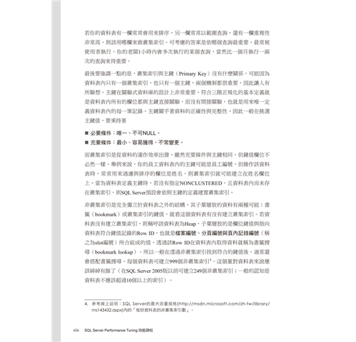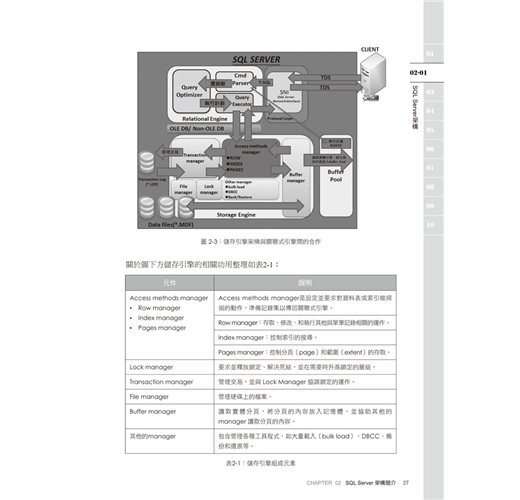 ■ 從SQL Server架構開始介紹,深入探究SQL Server的運作原理,如:軟硬體存取特徵、索引、資料存取介面、交易與鎖定等。