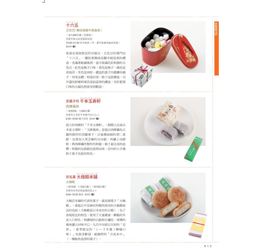 京都百年老店品質保證:羅列在書中的都是京都人最引以為傲的伴手禮,百年老店除了是從一而終的童叟無欺之外,還是口味、品質、歷史技術傳承的最佳保證。