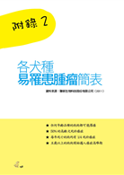 愛犬保健 - 日常照護、植入晶片、常見疾病與預防、懷孕與生產照護、減肥的重要、預防針、醫療爭議與處理、愛犬送行,附上最多人詢問的Q&A專欄,狗狗容易罹患的疾病簡表!
