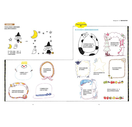 本書既是一本教學書,也是一本插畫集。書中的插畫種類眾多:有人物、動植物、食物、日常用品、交通工具、造型文字、裝飾框線等,其畫法簡單,即使是初學者也能輕鬆上手!不論是標籤、吊牌、筆記本、便利貼,或是行事曆、相簿、留言便條等,都能用這些可愛的插畫裝點出屬於自己的風格。現在就跟著我們一起進入可愛的插畫世界吧!