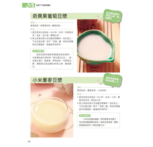 食材該如何搭配,才能讓豆漿的功效發揮百分百?如何做出好喝又健康的對症豆漿?這些答案都可以在本書中找到解答。