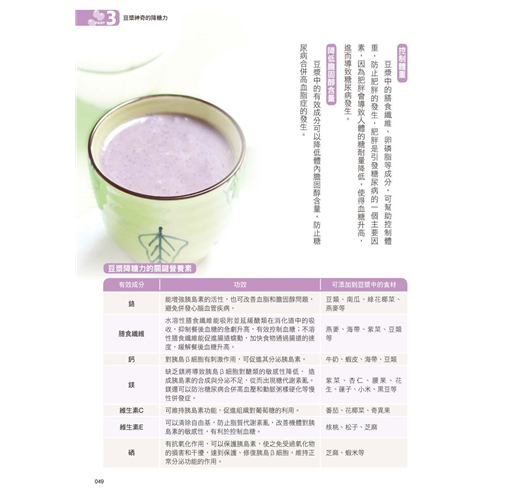 豆漿含有大量纖維素,能減少糖分,有效控制血糖,是糖尿病患者日常不可缺少的好飲品。