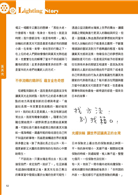 LightING Story 來聽故事,以即將上任國際扶輪社長的Gary為主軸,其他多位扶輪人為輔,無論是前總監、現任總監、未來的總監,他們的訪談錄有如寶藏,在這些人的身上找到超越挫折並轉化實力的奮鬥過程,在追求夢想之餘,也不忘回饋台灣兼愛天下的正向力。只要細細品嘗,任何人都能從中獲益,絕不會入寶山而空手回。