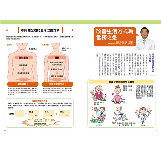 糖尿病是現代人最常罹患的慢性病之一,尤其罹病初期幾乎沒有自覺症狀,再加上易引發嚴重併發症,故蟬聯了國民十大死因前幾名數年之久。本書邀請三位日本知名糖尿病專科醫師協助,以Q&A的方式詳細記載糖尿病各種資訊,包括罹病機制、誘因、檢查與治療方式、藥物相關資訊等,一一解答讀者最迫切得知的糖尿病相關資訊。無論您是注重養生、有家族糖尿病史、飲食習慣不佳、缺乏運動、壓力較大、家中有糖尿病患者,或本身為糖尿病患者的人,都可藉由本書了解糖尿病最新訊息,進而戰勝糖尿病!