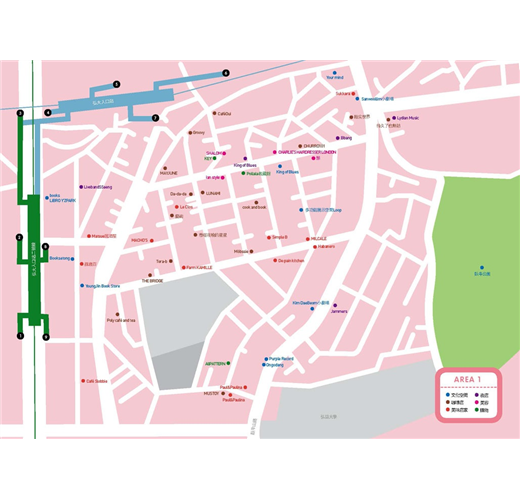 從弘大前、後街到弘大入口站,還有上水站和合井站周遭,