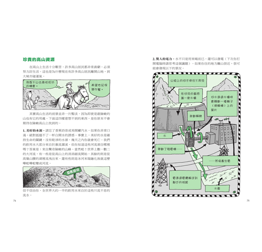 如果你要別人想像一座山,他很可能會把山形容是一堆形狀有點像金字塔的單調風化岩石。不過,驚奇險峻的山峰才不只這樣哩!事實上,山占據了地球表面1/5的面積,那是非常非常多的山呀!不過,山究竟是什麼呢?到底如何出現在那裡?山為什麼會這麼高?為什麼高山的山頂上會發現貝殼和海洋生物的化石?甚至還有關於全身長滿粗毛的「雪人傳說」的真相。險峻的高山隱藏了太多有趣的祕密,等你來探索。