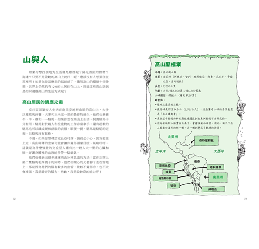 以幽默活潑的圖象,輕鬆簡明的文字,圖解各種地理現象形成的過程,輕鬆了解雨林的分層、環礁的奧祕、沙漠類型分布的原因,讓地理知識變得好讀好吸收。